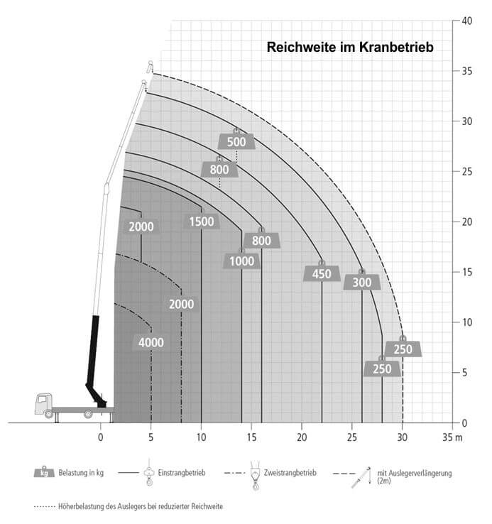 | Reichweite im Kranbetrieb | |