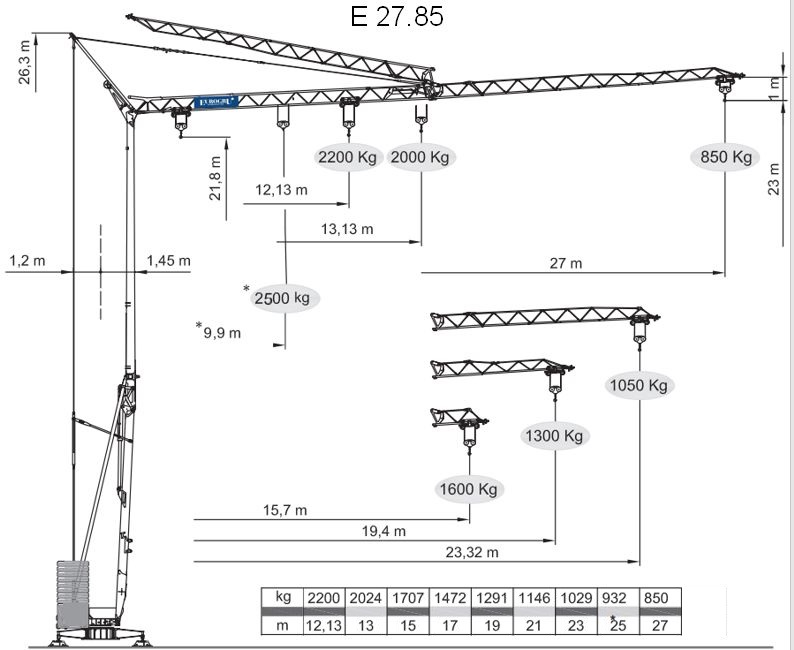 | max. Tragkraft (kg) bis 12,13 m | 2.200 |